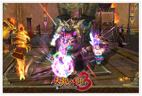 王陵内的恶灵守卫着龙柱 【关于《天龙八部3》】 《天龙八部3》是搜狐畅游(NASDAQ:CYOU)自主研发,于2011年面向全球玩家推出的3D后武侠网游。在前两作广受好评的基础上, 《天龙八部3》融合了跨游戏并接、云服务器、智能生态调节三大技术,以第二代网游开发模式创造出独立于原世界的"天外江湖"体系,并将武学系统进行全面升 级,增添更多全新势力玩法和高端挑战,让玩家体验破尽天下武学,行走天外江湖的巅峰武圣世界! 破尽天下武学,行走天外江湖! TL3.CHANGYOU.COM 【关于搜狐畅游】 畅游公司(NASDAQ:CYOU)是中国领先的在线游戏开发和运营商,于2009年4月在纳斯达克全球精选市场上市。畅游拥有领先的自主研发 技术平台和顶尖运营团队,自主研发的《天龙八部》、《天龙八部2》是中国最受欢迎的大型多人在线角色扮演游戏之一。2011年10月续作《天龙八部3》震 撼公测,以独创的"天外江湖"体系让玩家感受后武侠的无穷魅力。2011年7月,穿越武侠网游《鹿鼎记》上市,以卡通美术风格清新可爱地还原了金庸最后的 武侠世界。畅游目前正在运营的游戏还有《刀剑英雄》、《九鼎传说》(原《刀剑英雄2》)、《大话水浒》、《中华英雄》、《剑仙》、《古域》。此外,《战地 风云OL》、《霸者无双》等多款游戏正在测试中。畅游将继续秉承"第一精品第一在线"的产品理念,为用户提供更好的服务和游戏体验。