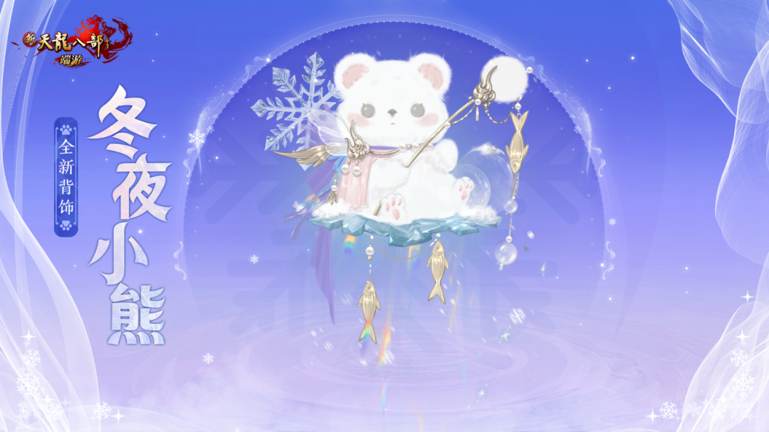 「冰雪燃动季」倒计时1天! 少侠们好呀!激动的心,颤抖的手,冬日最快乐的地方——冰雪不夜城,明日就要开园啦! 当然,八妹也希望能穿上最新的漂亮衣服和少侠们一起入园!所以昨天说好的全新时装爆料,今天就来啦! 事不宜迟,一起来看看八妹都为少侠准备了什么“萌物”吧! 全新时装:萌熊出没 厚实的白绒十分保暖,毛茸茸的熊爪萌度超标!穿上这只 “行走的雪球”,来冰雪不夜城收获一冬暖意吧~ 全新头饰:熊赳赳 可爱又保暖的毛绒小熊帽对于小孩子来说可能有点幼稚,但对八妹来说刚刚好! 全新背饰:冬夜小熊 谁能拒绝背后背上一只软萌小熊呢!毛绒球下悬着胖嘟嘟的小鱼,像是晃晃悠悠的钓鱼竿,十分灵动可爱~ 全新武器:熊爪棒冰 听说雪天和棒冰更配!晶莹剔透,冰爽香甜,熊爪造型乖萌可爱,这回真的可以用最萌的武器打最狠的架啦! 全新武器:小熊甜筒 奶油冰淇淋趴着圆滚滚的小熊,脆筒柄缀满雪花甜饰 —— 挥起来似乎都能闻到浓郁的奶香,出招前恐怕都能先馋哭敌对! 全新时装&头饰&背饰&武器即将上线正式服,喜欢的少侠不要错过啦~