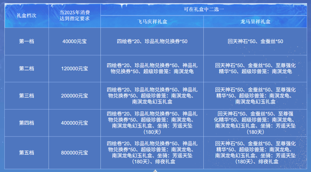 少侠们周二好呀,翻开日历八妹“垂死梦中惊坐起”,发现距离2026只剩两天了! 有哪些需要在年前和少侠们爆料完,【2025年终VIP回馈】当然是top优先级~ 全新珍兽:南溟龙龟 「南溟龙龟」破浪而至,降临人间。它背甲铭刻山河脉络,尽显嶙峋锋芒。此番降临,不止为伴,更为守护—— 助少侠御风浪,纳洪福,在全新纪元里,稳擎四海,永镇山河! 珍兽变异展示 (GIF画面有压缩,游戏内表现更佳) 全新时装:墨羽潜幽·绯夜 当然新年新衣服也少不了,这套剪裁干练的「墨羽潜幽·绯夜」,把冷艳与凌厉融合得恰到好处,让少侠直接成为江湖里的时尚达人! 外观细节展示 (GIF画面有压缩,游戏内表现更佳) 如何领取 年终回馈专题页现已上线,少侠们可以点击文末【阅读原文】前往活动专题页查询。 2025年1月1日-2025年12月31日间,若达到指定消费额度即可在2026年1月1日-1月31日间领取对应档次的礼盒(非叠加领取)。 荣耀百强榜争锋 截止于1月1日0点,全服装备评分排行榜上前100名的少侠,即可获得年度限定称号与盛名!