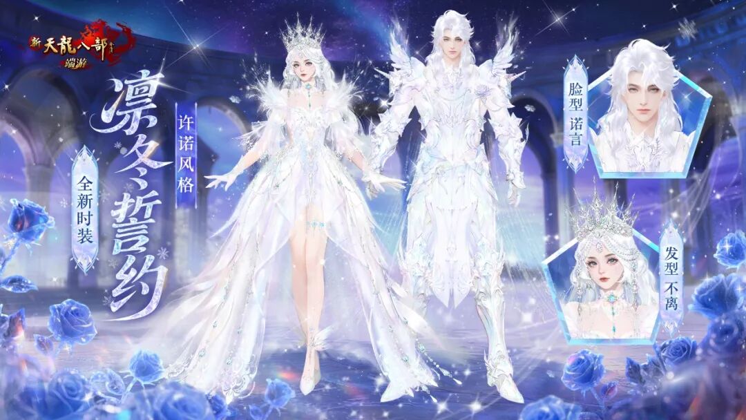 少侠们好呀,今日立春,八妹掐指一算,宜脱貂裘换轻衫…… 正当八妹翻阅黄历时,窗前飞来一对麻雀,叽叽喳喳提醒八妹——不仅早春降临,情人节也快到了! 八妹可以孤寡,但少侠们的情人节还是不能怠慢!趁着最早的春意,八妹双手奉上情人节限定外观,一起来看看吧~ 霜雪为契 誓约永恒 春雪初霁,暖意暗涌,正是缔结誓约的时节—— 情人节全新时装「凛冬誓约」,以霜雪为灵感,邀你共赴一场永恒的纯白之约。 花榜限定:许诺风格 八妹也为大家带来了细节展示, 少侠可以旋转手机横屏观看, 点击图片放大即可查看细节, 上下滑动欣赏更多美丽~ ▼滑动查看更多▼ ▼动图全方位细节展示▼ 女款羽纱长裙以星霜为线、冰晶为缀,每一缕流动的柔光,都是冬日里为爱人绽放的温柔。 男款银白战甲以冰晶为甲、羽翼为肩,象征凛冬里永不褪色的守护誓约。 发型「不离」以冰雪晶钻加冕发顶,是镌刻在发间的永恒爱意;脸型「诺言」眉眼凝情,是一眼万年的心动定格。 凛冬誓约 以冰雪为纱,许你一场江湖白首的永恒相守。 ▼旋转手机横屏观看,滑动查看更多▼ 全新幻武 绽放凛冬 全新冰雪主题幻武,霜雪为锋,冰晶为魂,为你的江湖征途镀上凛冬荣光! ▼全新武器:晶璨玫瑰▼ ▼动态展示▼ ▼全新武器:银辉圣剑▼ ▼动态展示▼ ▼全新武器:北境霜锋▼ ▼动态展示▼ ▼全新武器:寒晶飞羽▼ ▼动态展示▼ 金辉踏焰 苍雪覆霜 「金辉领主」身披鎏金羽翼,踏焰而行;「苍雪领主」凝冰晶为骨,覆霜而驰; 两种风格任少侠选择,以领主之姿,驭风驰骋! ▼全新坐骑:金辉领主▼ ▼动态展示▼ ▼全新坐骑:苍雪领主▼ ▼动态展示▼ 恋爱天使 甜蜜降临 全新珍兽「恋爱天使」甜蜜降临,续写专属心动篇章。 让天使的羽翼,为你的江湖恋曲保驾护航! ▼全新珍兽:恋爱天使▼ ▼恋爱天使:顶变展示▼ 「恋爱天使:护星穹风格」同步登场!琉璃长弓凝聚银河浪漫,展开流光双翼为心动导航。 让星穹的璀璨光芒,照亮你在江湖中的每一段甜蜜奔赴。 ▼恋爱天使:护星穹风格▼ ▼动态展示▼ 月下琴音 雪影双生 全新头饰「雪影双生」浪漫登场,半遮的温柔与锋芒为你的江湖造型添上一抹神秘伏笔。 ▼全新头饰:雪影双生▼ ▼动态展示▼ 全新背饰「月光协奏曲」惊艳现世,冰晶凝铸成竖琴,银河月光与凛冬雪色揉入弦间,奏响浪漫乐章。 ▼全新背饰:月光协奏曲▼ ▼动态展示▼ 情人节外观及系列活动即将上线!